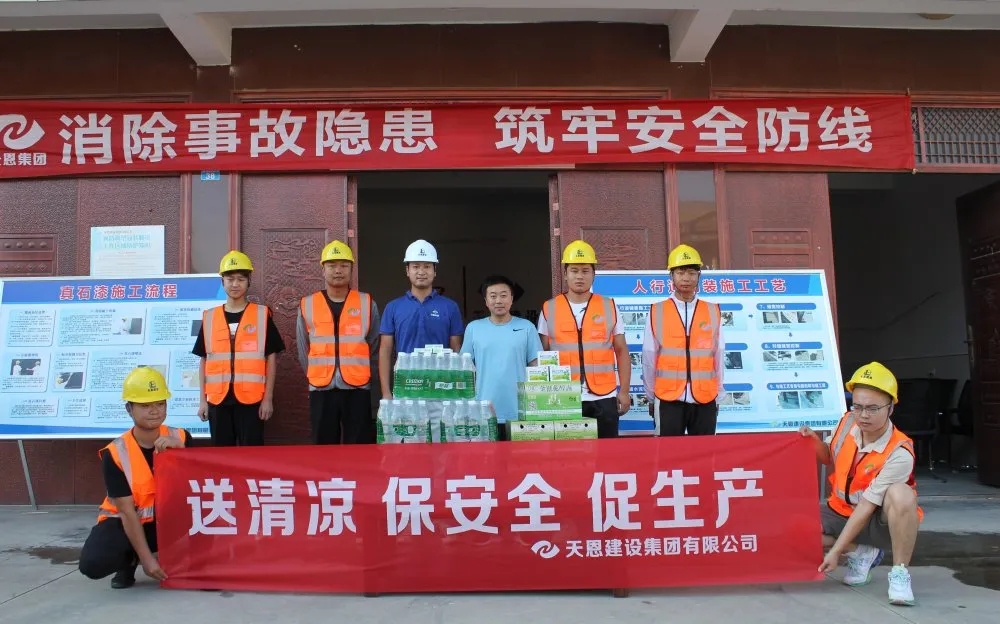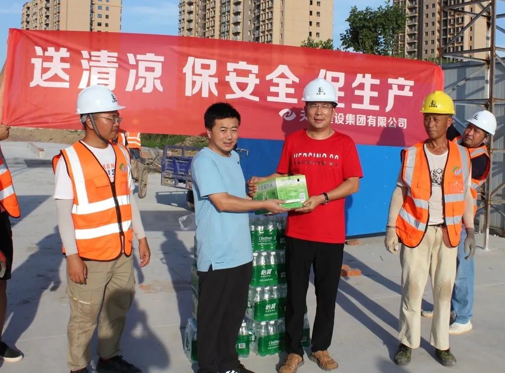 時值盛夏,驕陽似火,頂著烈日奮戰(zhàn)在一線的員工們一直牽掛著領(lǐng)導(dǎo)們的心。8月6日,天恩建設(shè)集團(tuán)有限公司工會領(lǐng)導(dǎo)深入一線開展“送清涼 保安全 促發(fā)展”慰問活動。