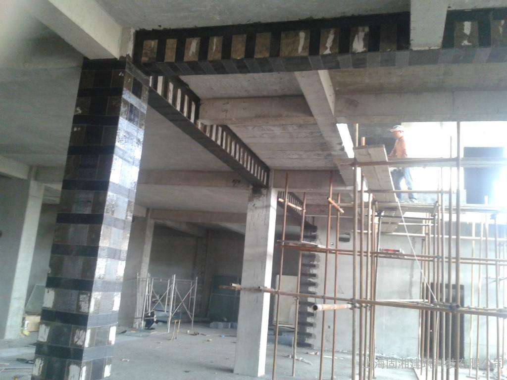 不足之處:完成質(zhì)量在很大程度上依賴碳素纖維布和專用結(jié)構(gòu)膠的選取,而現(xiàn)在市場(chǎng)上纖維材料和結(jié)構(gòu)膠質(zhì)量參差不齊,價(jià)格相差比較大,這樣也就有些自身要求不嚴(yán)格的施工單位沒(méi)有嚴(yán)格按照設(shè)計(jì)要求選擇材料,而材料是決定此加固方法效果的關(guān)鍵。還有就是本身方法的缺陷,兩種不同材料的共同工作問(wèn)題,規(guī)范雖然作了滯后效應(yīng)的考慮,但實(shí)際當(dāng)中加上施工的誤差,材料本身的差異,理論跟現(xiàn)實(shí)是有較大出入的。且加固規(guī)范要求此法在加固時(shí)不能超過(guò)原構(gòu)件承載力的40%,另現(xiàn)場(chǎng)施工時(shí)還要注意防火問(wèn)題。